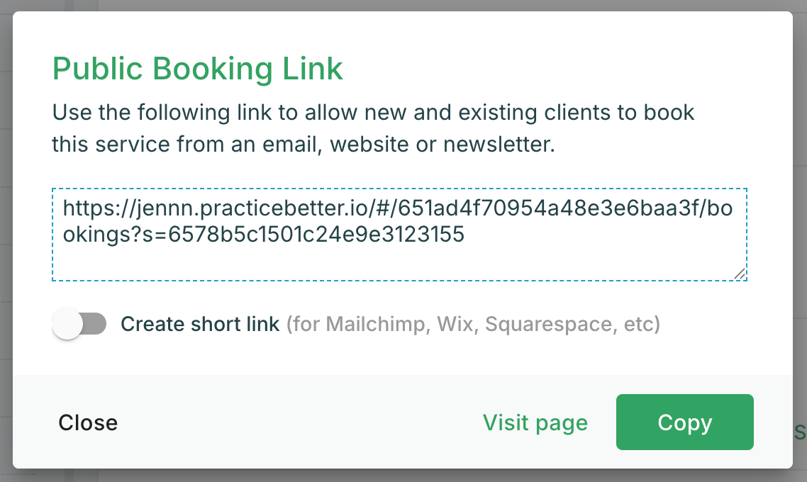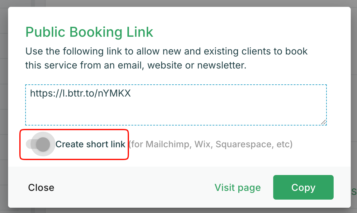 We recommend using a short link if you'll be copying your booking link into an email marketing tool (e.g. Mailchimp) or a website maker (e.g. Wix or Squarespace) as these sites may have issues redirecting to your page correctly.