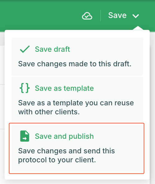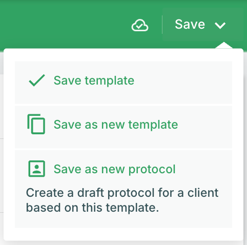- Save as new protocol: Select this when you want to create a client-specific protocol based on this template immediately. You'll be prompted to choose which client should receive this protocol.
