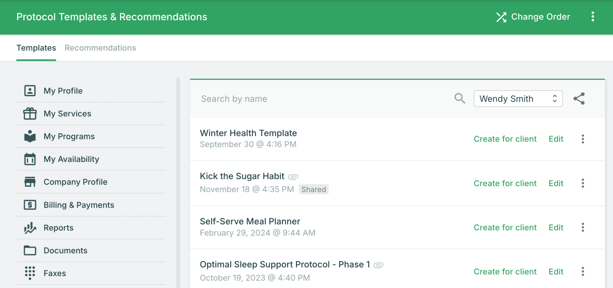 If you're part of a group practice on a team plan, you can share protocol templates with other practitioners when proper permissions are enabled. To configure sharing settings: