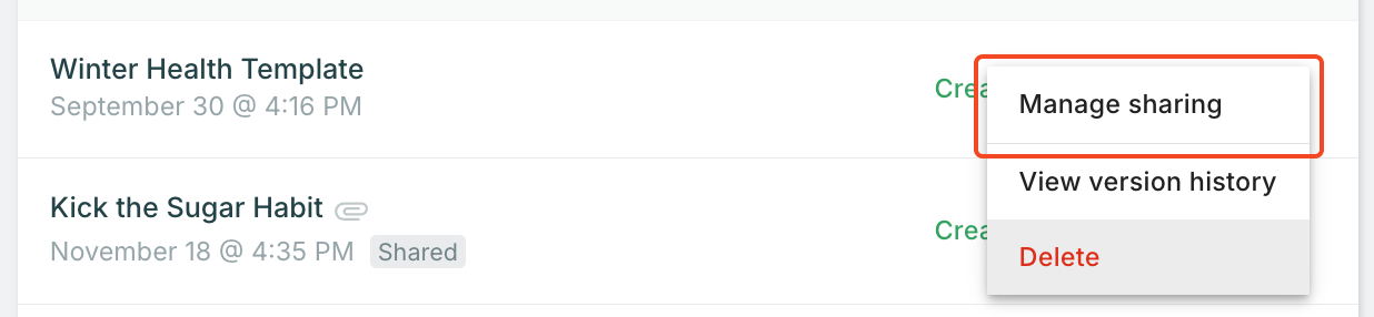 - Click the More Options menu (3 dots) and select Manage Sharing.