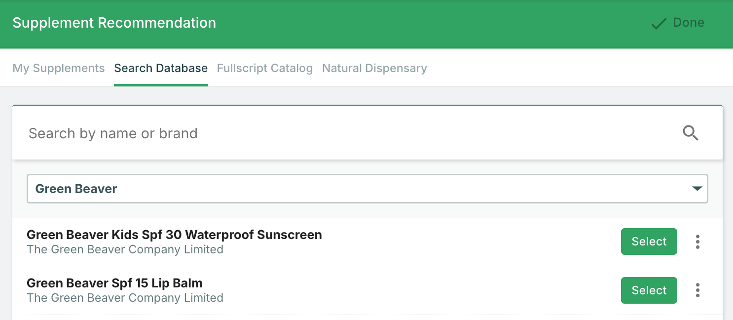 Enter the supplement name in the search bar, then click Select next to your preferred product.