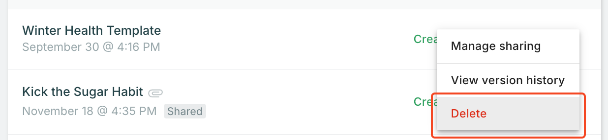 💡 Tip: Accidentally deleted a protocol template? You can restore deleted resources through Practice Better's recovery feature. Learn more about restoring deleted clients and resources.