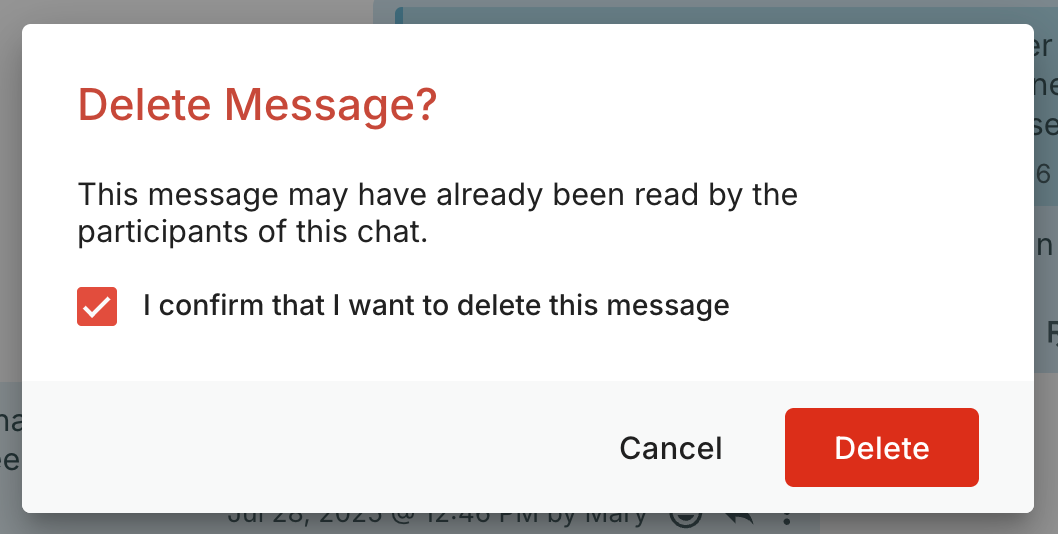 If you don't see the option to delete your chat messages, or you encounter an error, this means the ability to delete chat messages has been disabled by your team account owner.