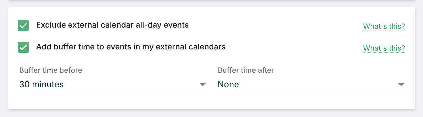 Additional availability settings are available on your Bookings & Cancellation Settings page, including two buffer time options that work differently from the sync buffer time described above.
