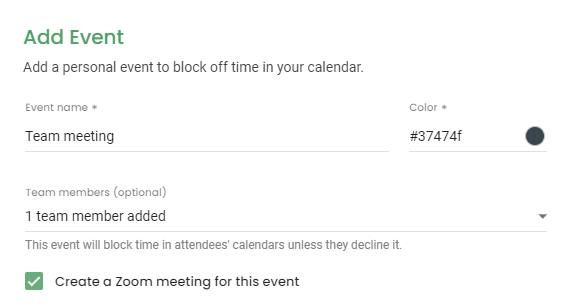 - Team Plan customers can invite team members to events. And with the Zoom integration, Zoom meetings can concurrently be created