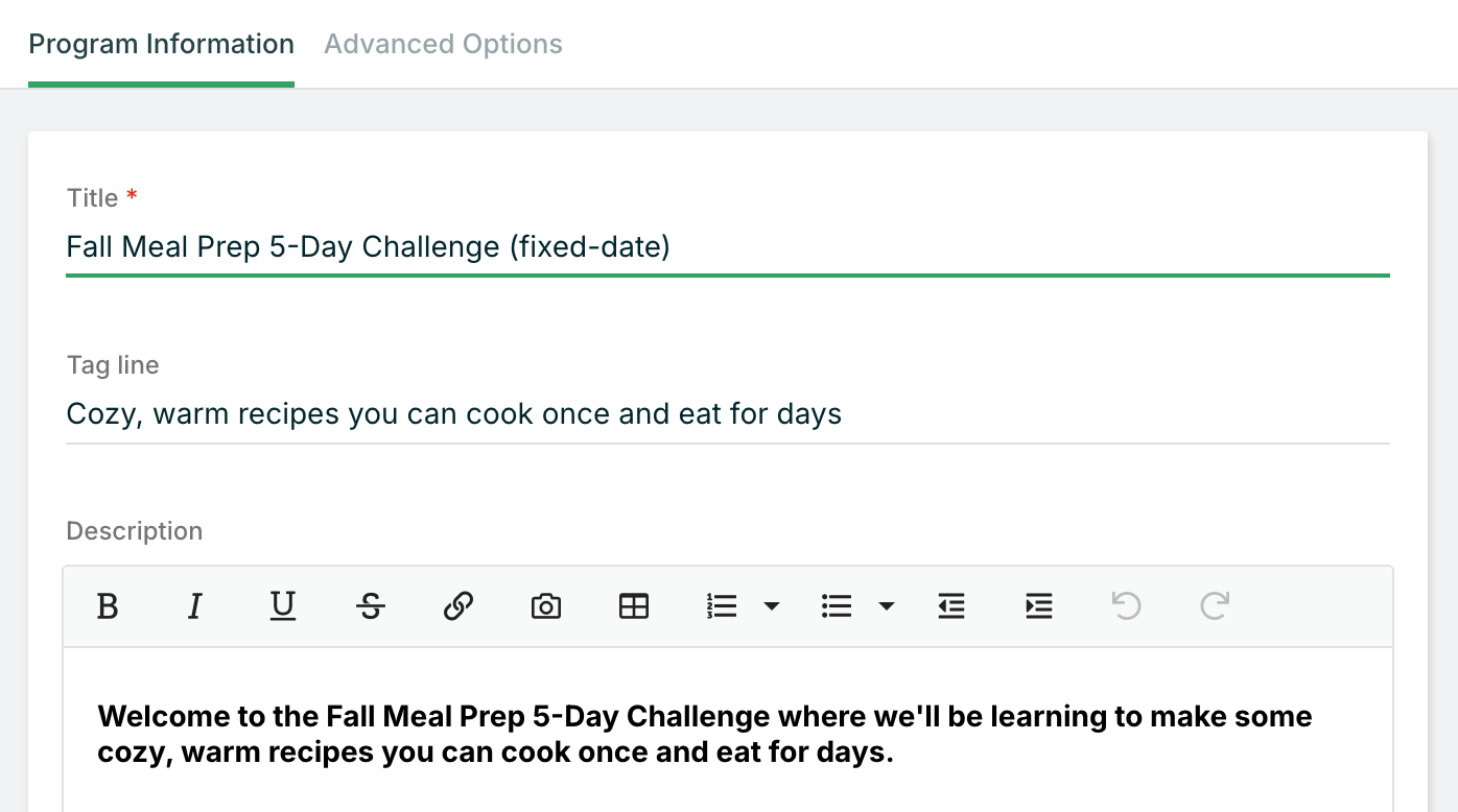 - Title: Adjust the program name in the Title field to clearly communicate what clients will learn or achieve.