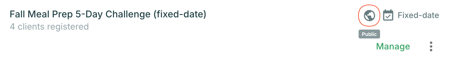 Allow my clients to register for this program: This will list the Program as “Public” in your list of Programs, and it will be listed on your uncustomized Default bookings page.
