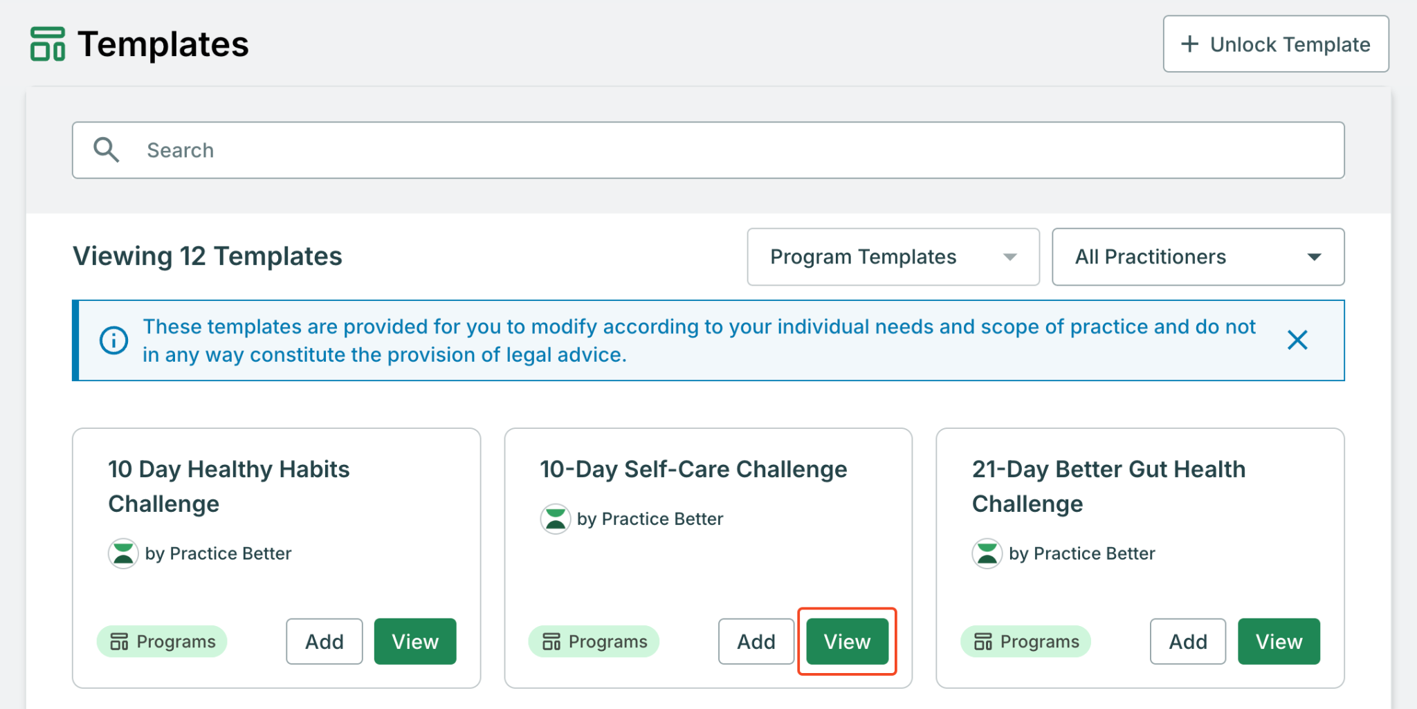 Practice Better's template library offers proven program structures you can customize and make your own. Templates save you hours of setup time while giving you a professional foundation to build from.
