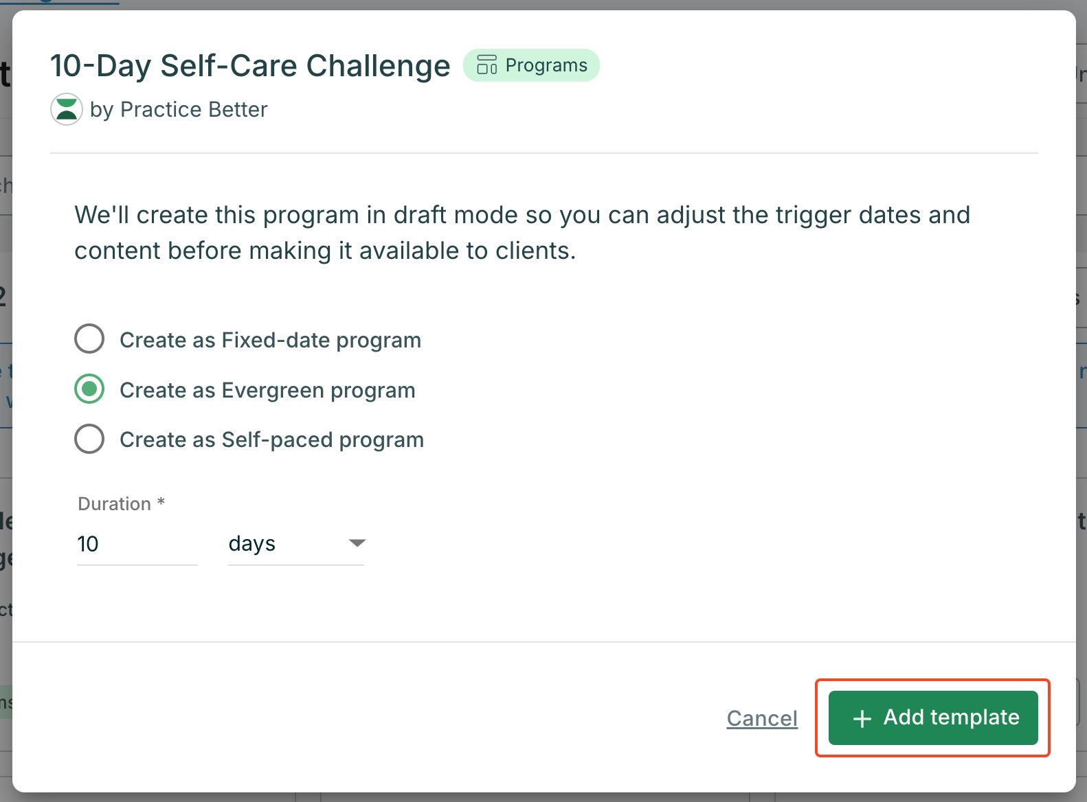 💡 Not sure which program type fits your needs? Most practitioners start with Fixed-Date programs for structured courses or Evergreen programs for ongoing offerings. Self-Paced works best once you have established course content.