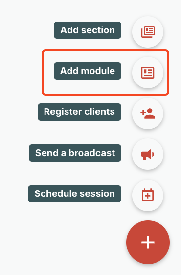 From the Program Overview page, click the Fast Action Button > Add Module.