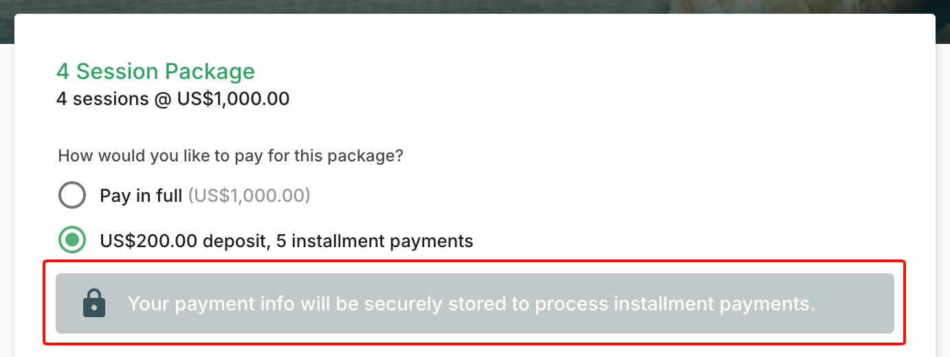 💡 Tip: Make sure your payment plan schedule is clearly communicated. Clients can view their payment plan details anytime in their Client Portal after booking.