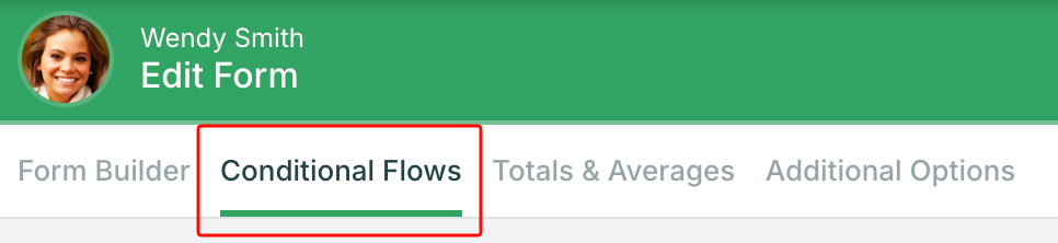 To edit an existing flow, you can either click directly on the trigger question in the Form Builder or go to the Conditional Flows tab at the top of the form editor.