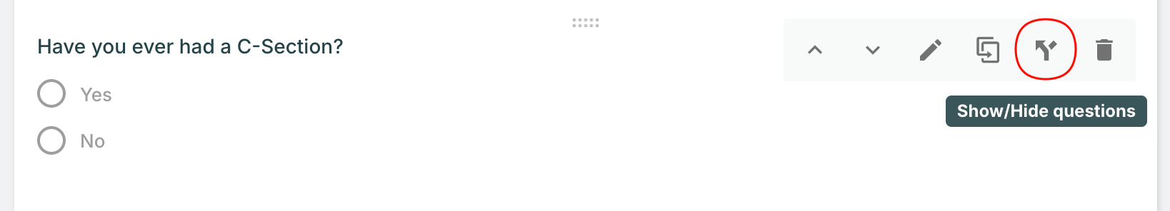 - Choose whether to Show questions or Hide questions when the trigger answer is selected (see below for guidance on each option).