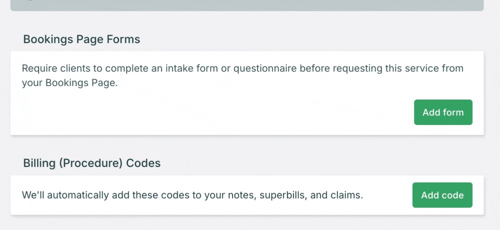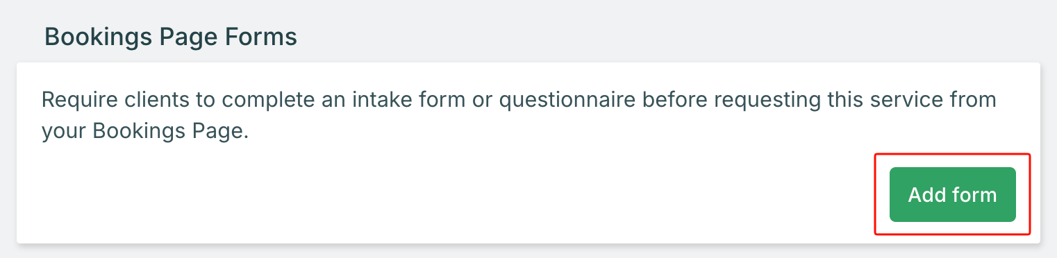 💡 Tip: Consider the client experience when deciding which forms to require at booking. Short intake forms with essential questions work best during the booking process, while detailed assessments or lengthy questionnaires might be better suited for post-booking delivery through automations.