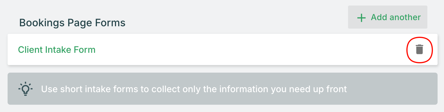 This approach ensures you have the information you need right from the start, making it easier to prepare for new client sessions and reducing back-and-forth communication. You can require up to three forms to be completed as part of the booking process, and we recommend using concise intake forms or shorter forms to keep the experience smooth for your clients.
