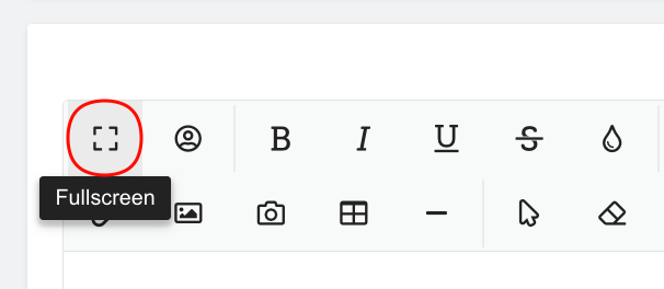 - Click the Fullscreen button in the top-left corner of the notes editor.
