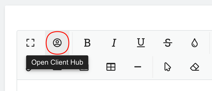 - Click the Open Client Hub button in the top-left corner of the text editor.