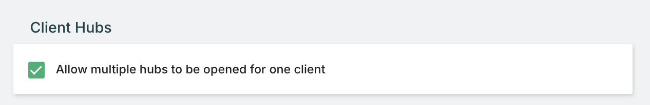 If you'd prefer to limit each client to one open Client Hub at a time, go to Settings > Portal Preferences and uncheck Allow multiple client hubs to be opened for one client. Click Save Changes at the top-right.