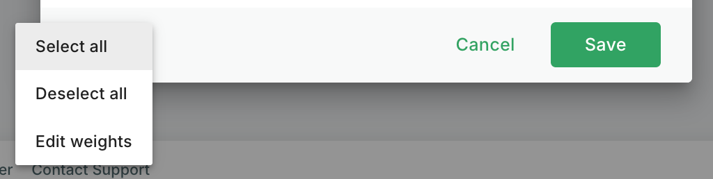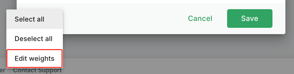 To adjust weights, select Edit weights from the Settings button in the bottom-left corner.