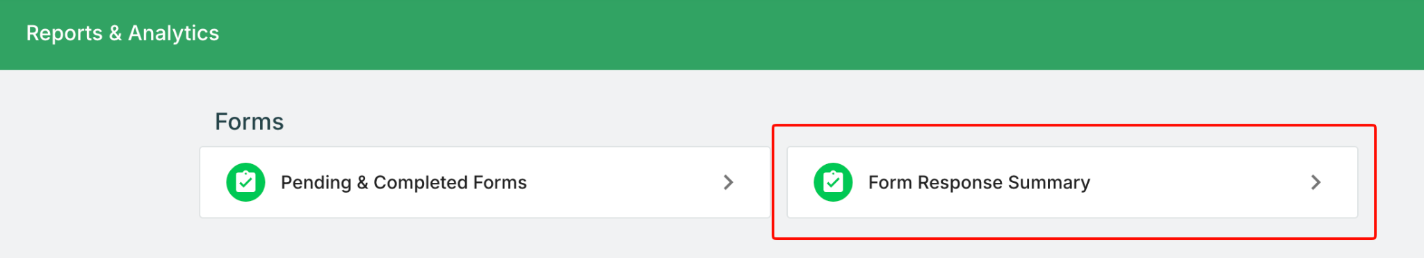 Aggregate scores are not available as a standalone export, but you can review form response data — including aggregate results — using the Form Responses Report.