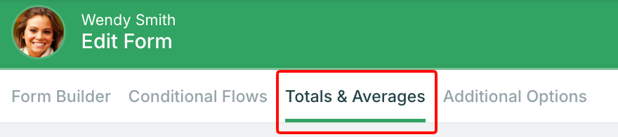 The Totals & Averages tab is always available in your form editor, but you'll need at least one Grid, Numeric, or Scale question in your form before an aggregate can be calculated.