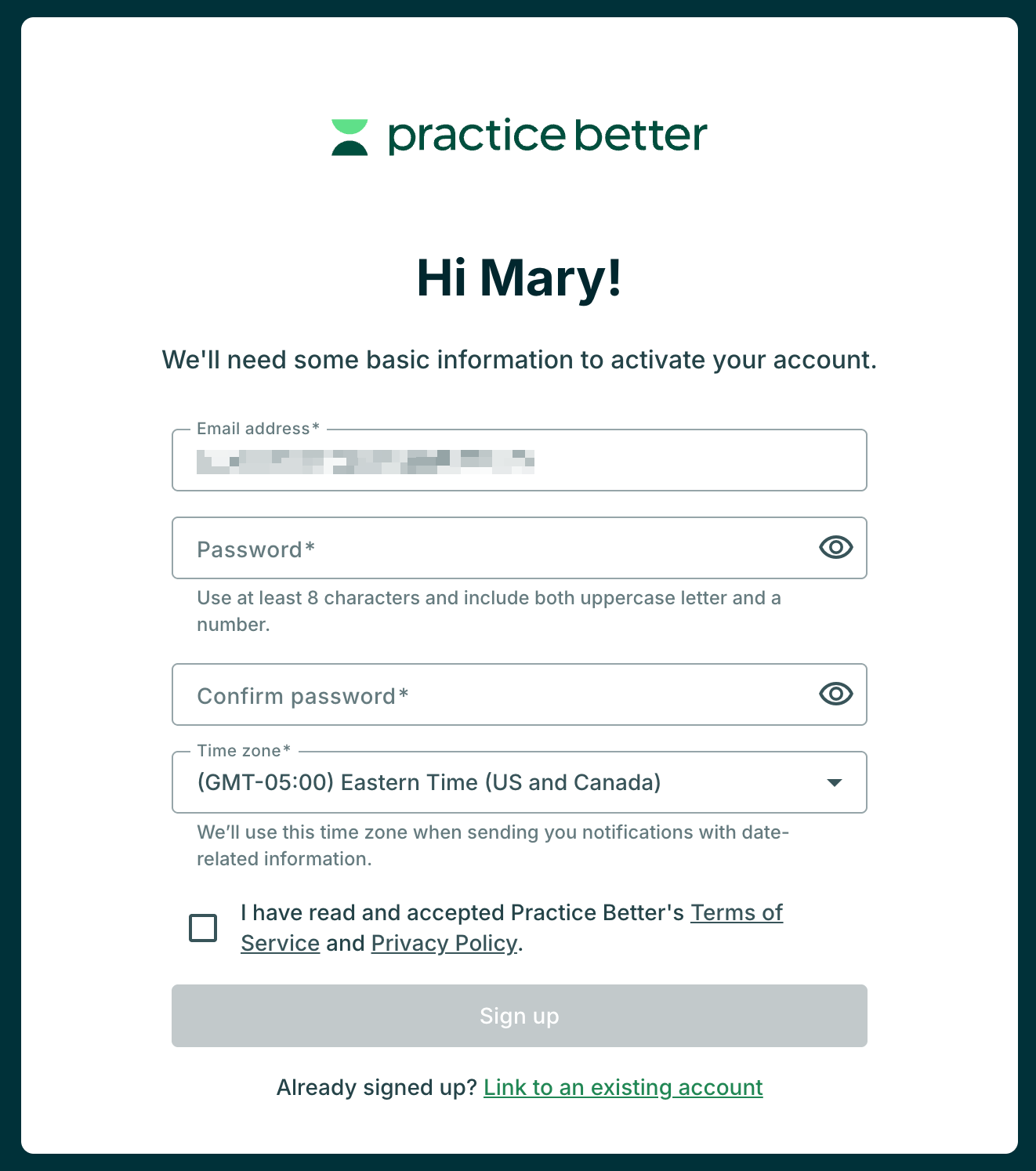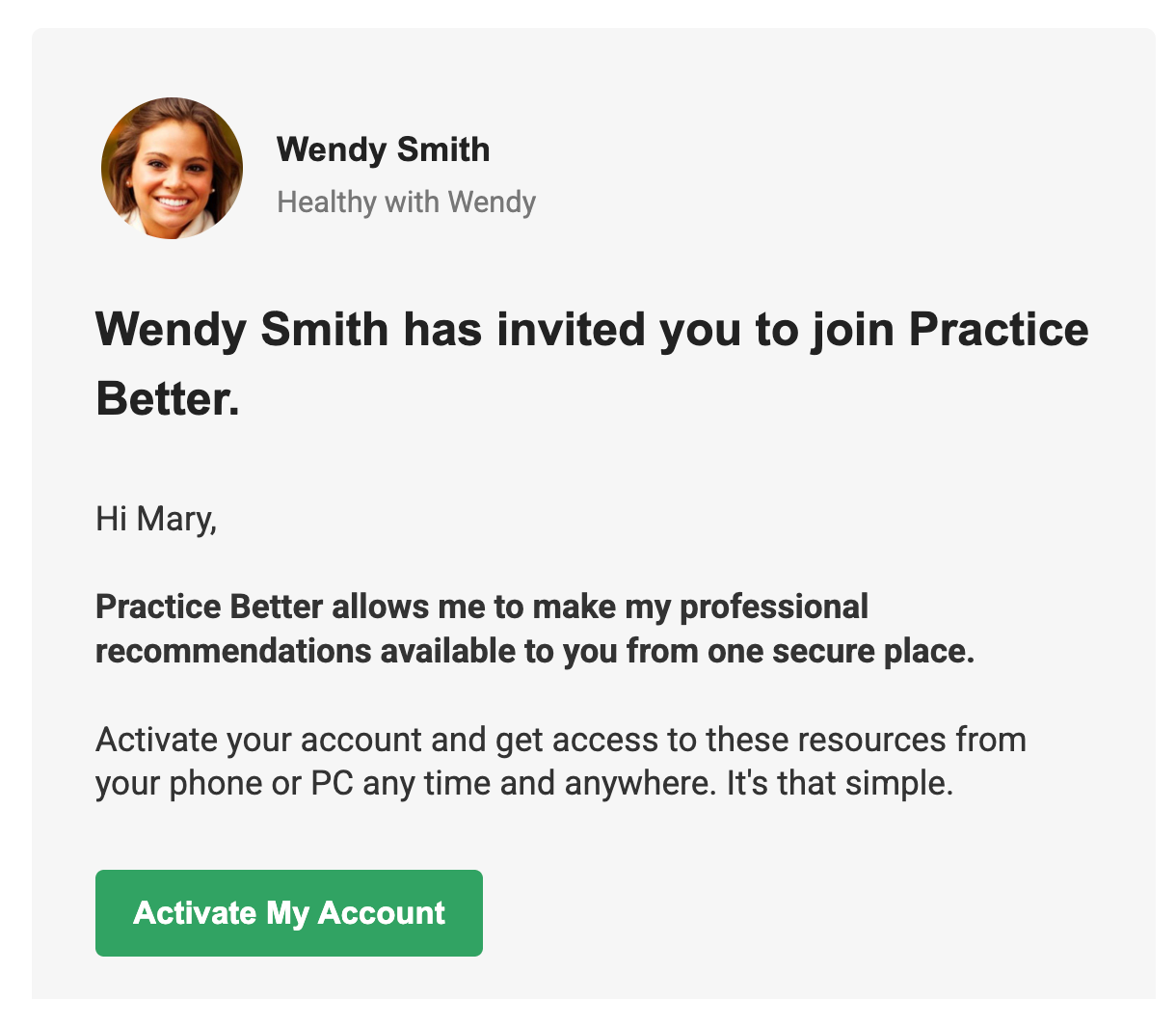 - Open your secondary email inbox and look for an email with the subject line "Join [Your Name] on Practice Better."