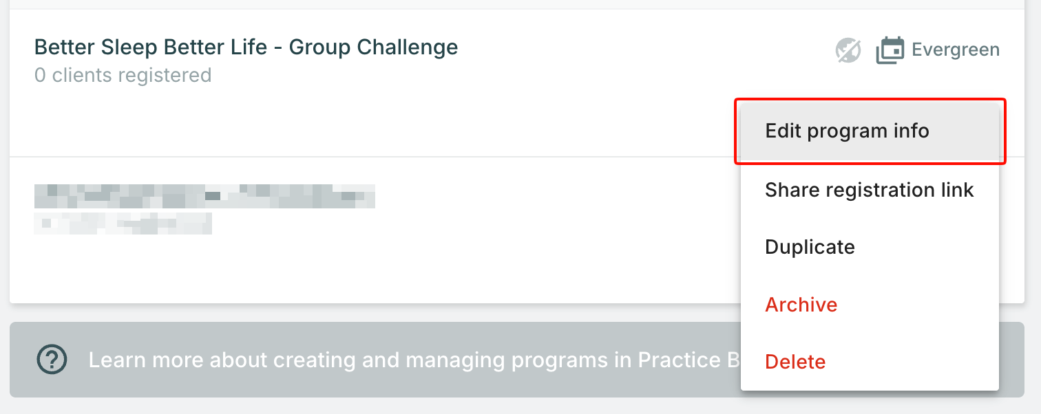 - Click the More Options menu (3 dots) next to your program and select Edit program info.