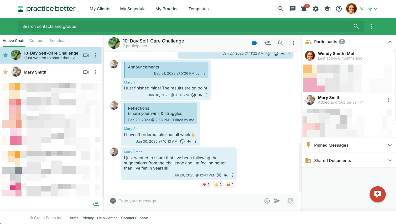 Chat moderation requires active oversight from you and any participating team members. Practice Better doesn't offer automated content filtering, so you'll need to monitor conversations regularly to ensure appropriate and supportive interactions.