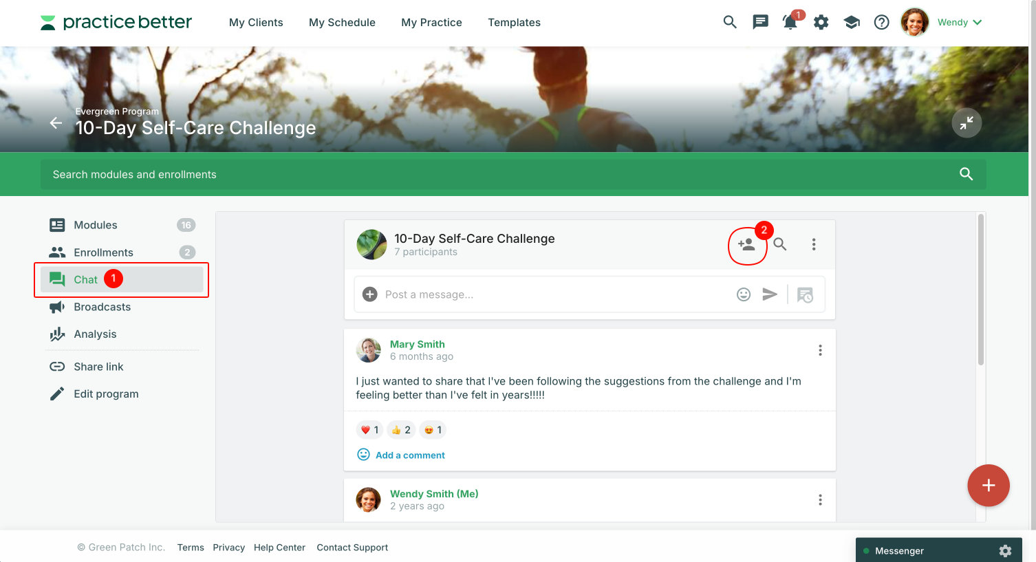 Whether you've disabled automatic enrollment for clients or want to add practitioners and team members to support your community, Practice Better gives you flexibility in managing chat participants.