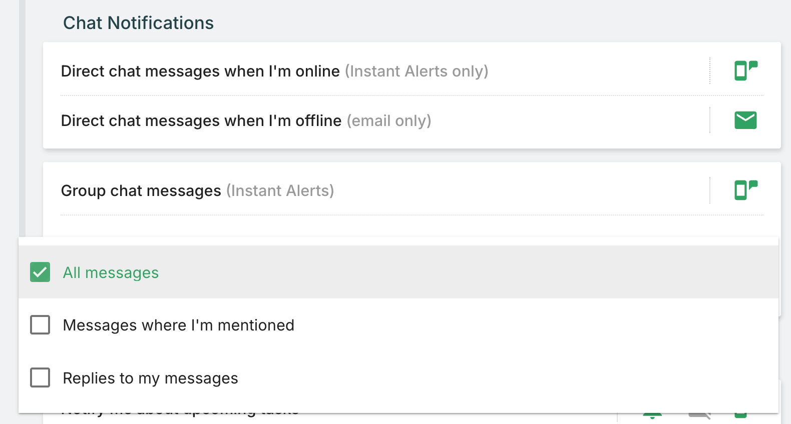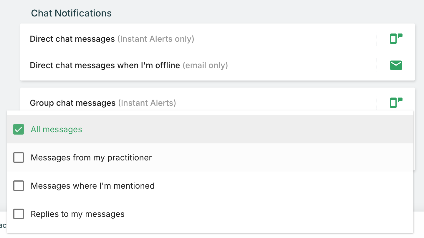 Practitioners can choose which types of group chat messages they want to be notified about.