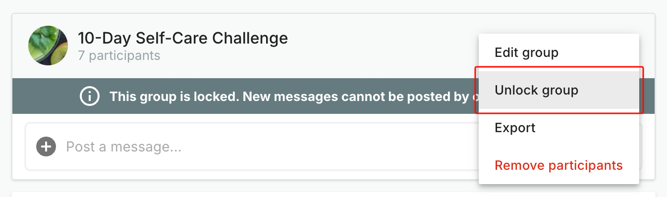 ✅ You can unlock a group chat independently of the program's archived status — allowing continued community conversation even after formal program completion. If you unarchive the program, the chat unlocks automatically.