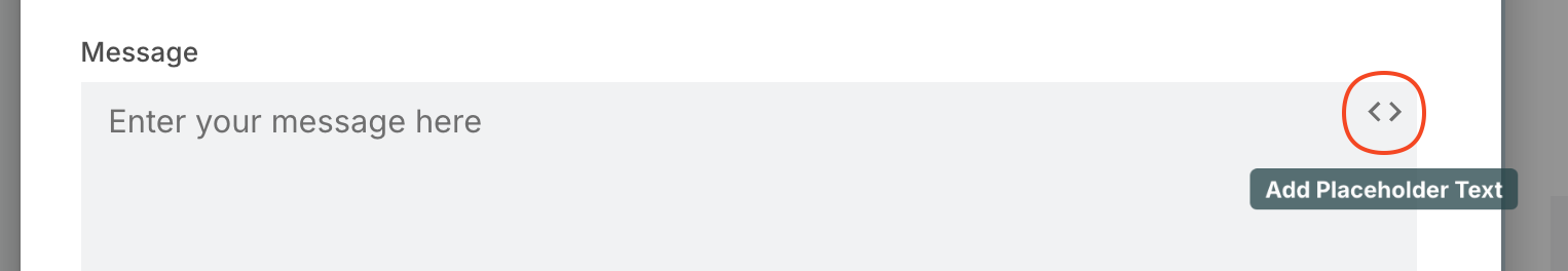 - Use the placeholder button (<>) to personalize messages with fields like: