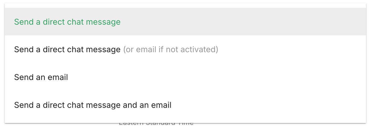 - Direct chat message or email if uninvited: Clients with Client Portal access get a chat message; those without access receive an email. Email only. Direct chat message and email.