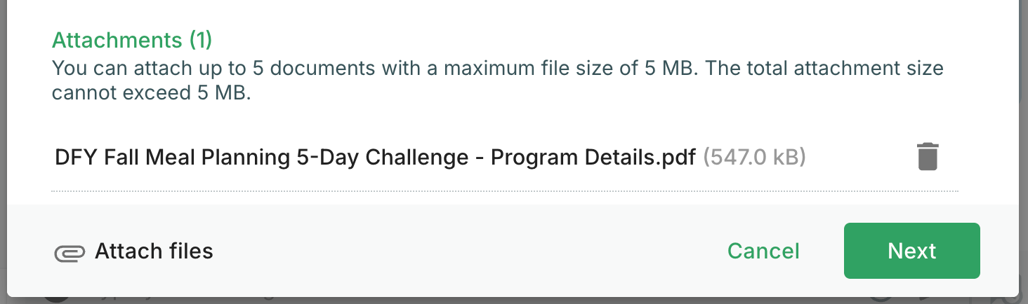 - Click Attach files (bottom-left of the pop-up) to upload files from your device.