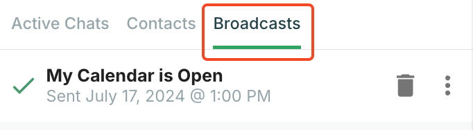 - Duplicate, cancel, or delete a broadcast: Use the More Options menu (3 dots).