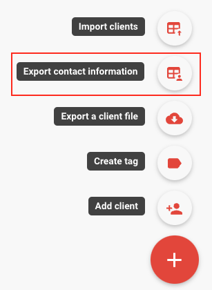 Head over to My Clients and click Export contact information from the Fast Action Button: