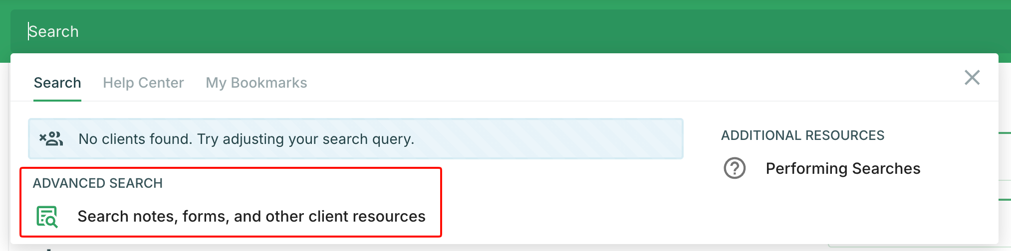 When you need to search for specific information across your entire practice β not just client names β Advanced Search is your go-to tool. This powerful feature lets you query content within client records across all your clients at once.