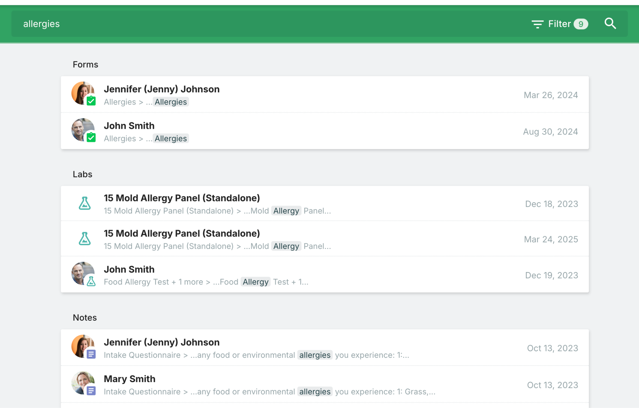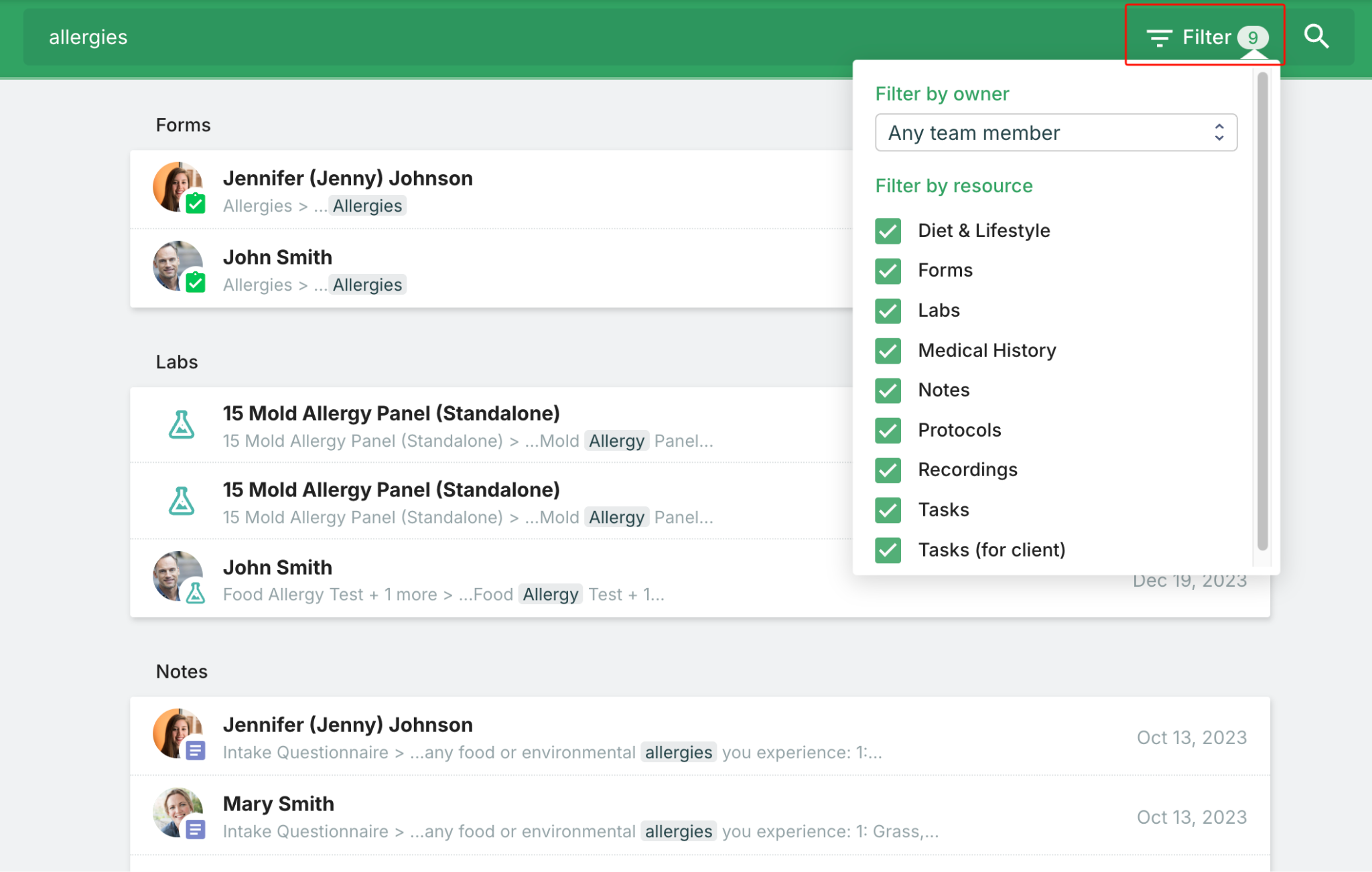 Practice Better offers filtering options to help you narrow down your search results and find exactly what you're looking for: