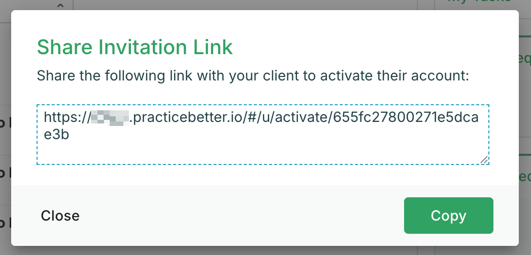 Copy the URL from the pop-up and share it with your client outside of Practice Better.