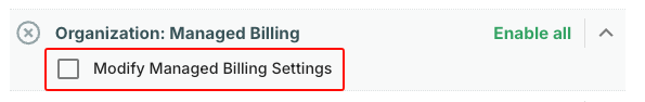 - Locate and expand the settings for Organization: Managed Billing.