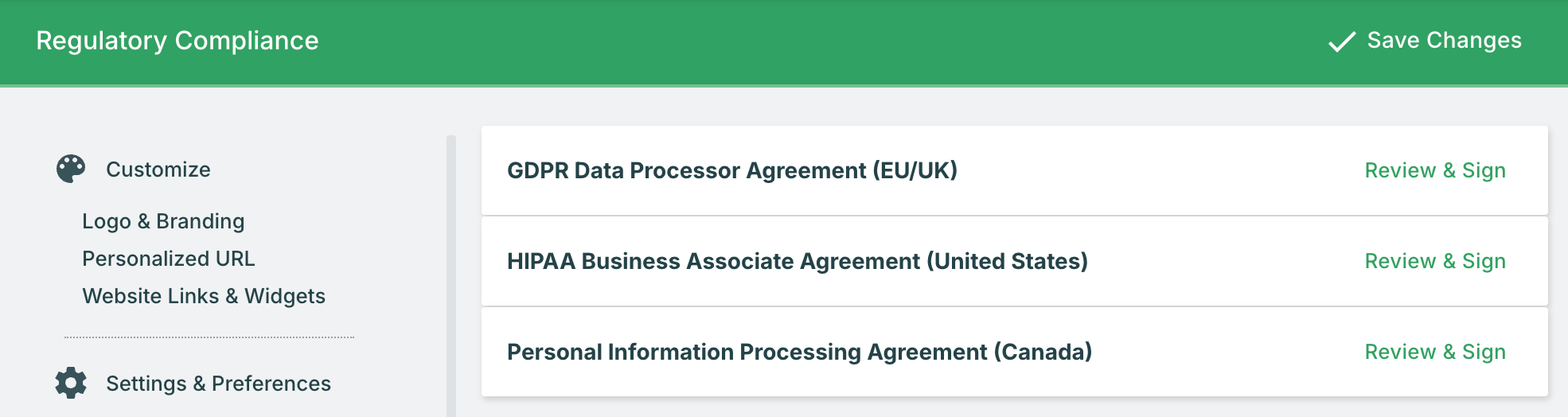 You can access the available Regulatory Compliance agreements in your account by navigating to your Settings (Gear Icon) > All Settings & Preferences.