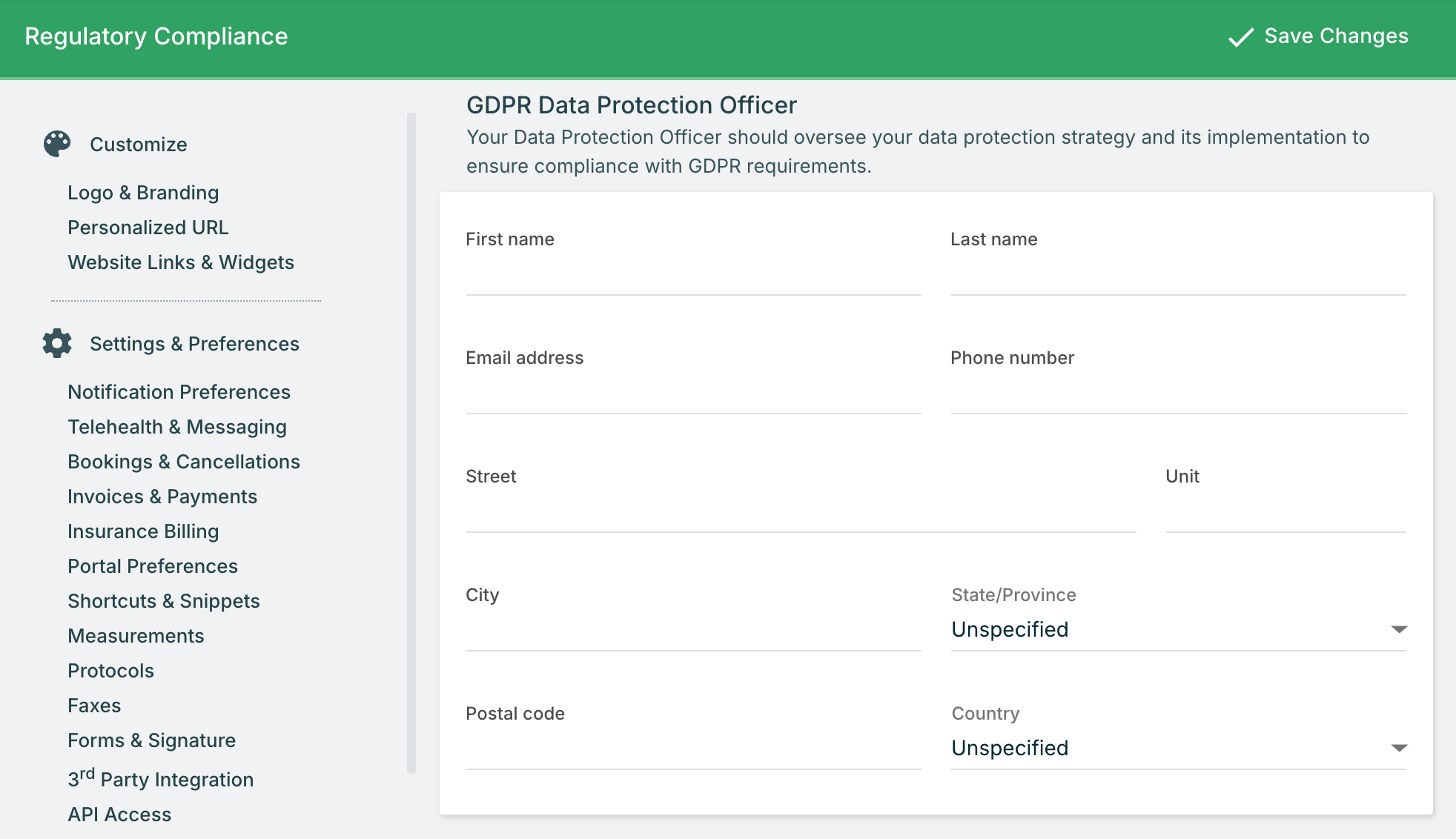 If you live in the EU/UK, you also have the option to register your company's designated Data Protection Officer with Practice Better on this page.