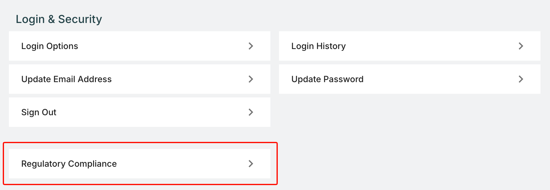From here, scroll down to the Login & Security section and click on the Regulatory Compliance option.
