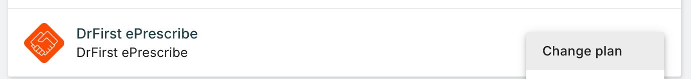 To update your ePrescribe plan, click the More Options Menu (3 dots) on the DrFirst ePrescribe integration and select Change Plan.
