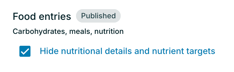 - Check “Hide nutritional details and nutrient targets” to remove nutrient breakdowns and daily totals from the client’s view.