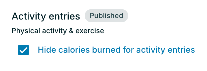 - Check “Hide calories burned for activity entries” to prevent clients from logging calories burned or seeing calories burned from integrated wearables data.