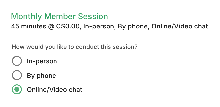 Note: these are controlled by your practitioner, and not all options may be available for every service.