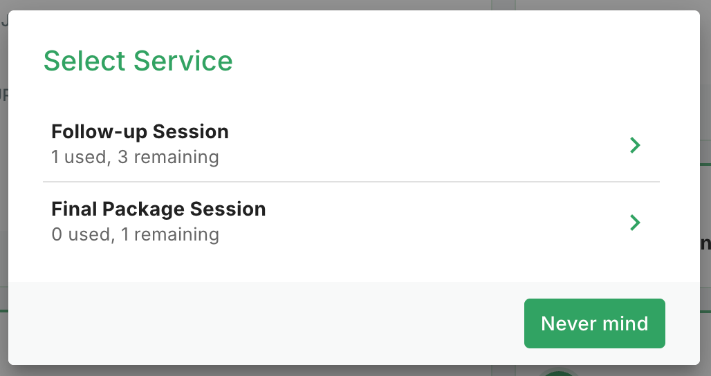 - Select a service to book an available session from your package.