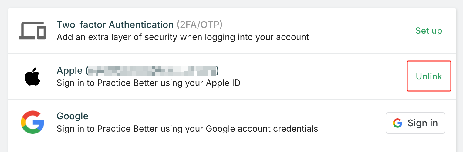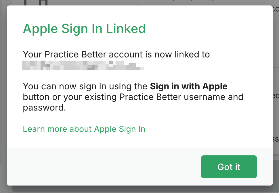 Already have a Practice Better account? You can easily add Apple ID as a login option without disrupting your existing setup.