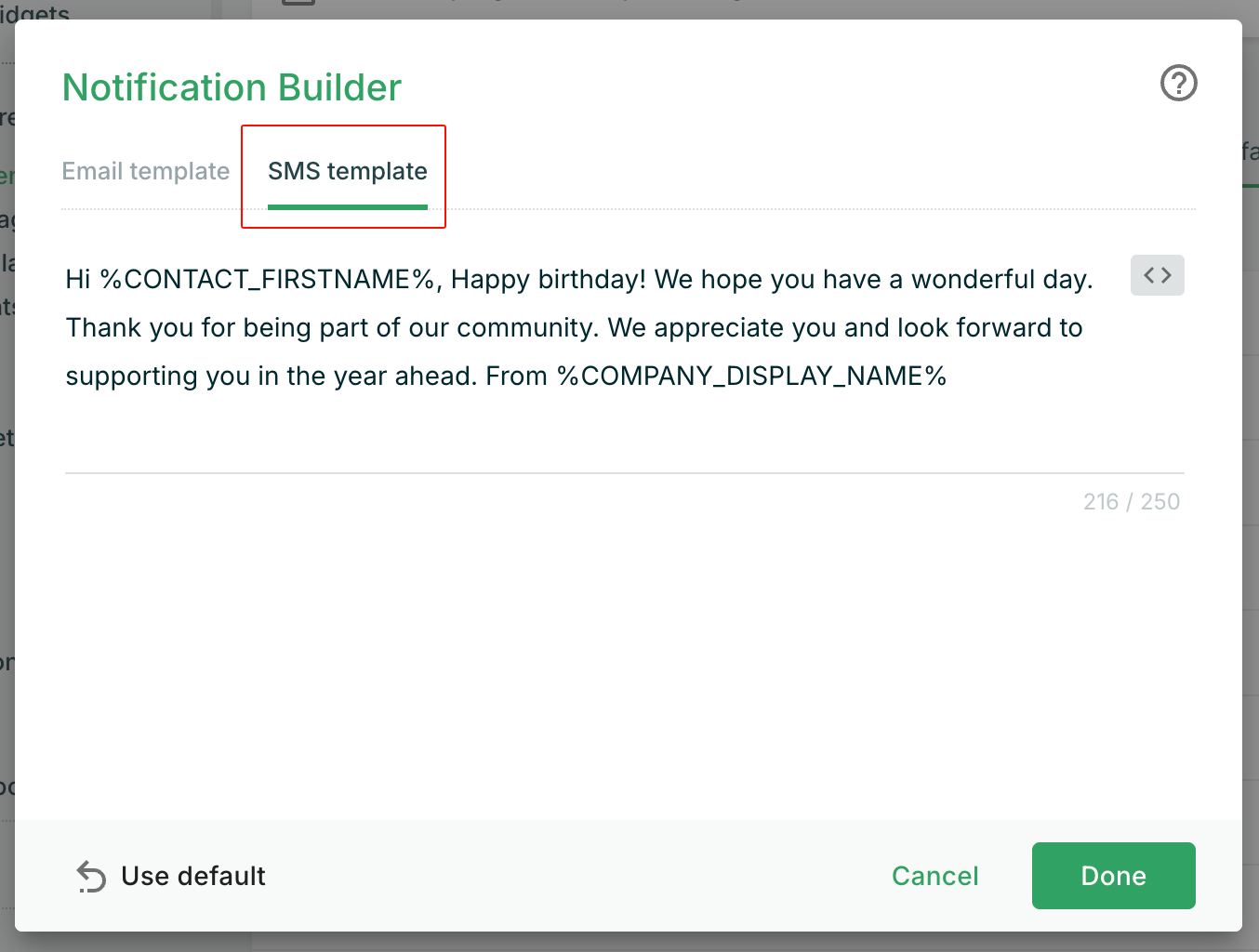 Updating your message template: Any changes you make to your birthday message template in Notification Preferences will automatically apply to all upcoming birthdays. There's no need to recreate the automation – simply update the notification template, and future messages will reflect your changes.